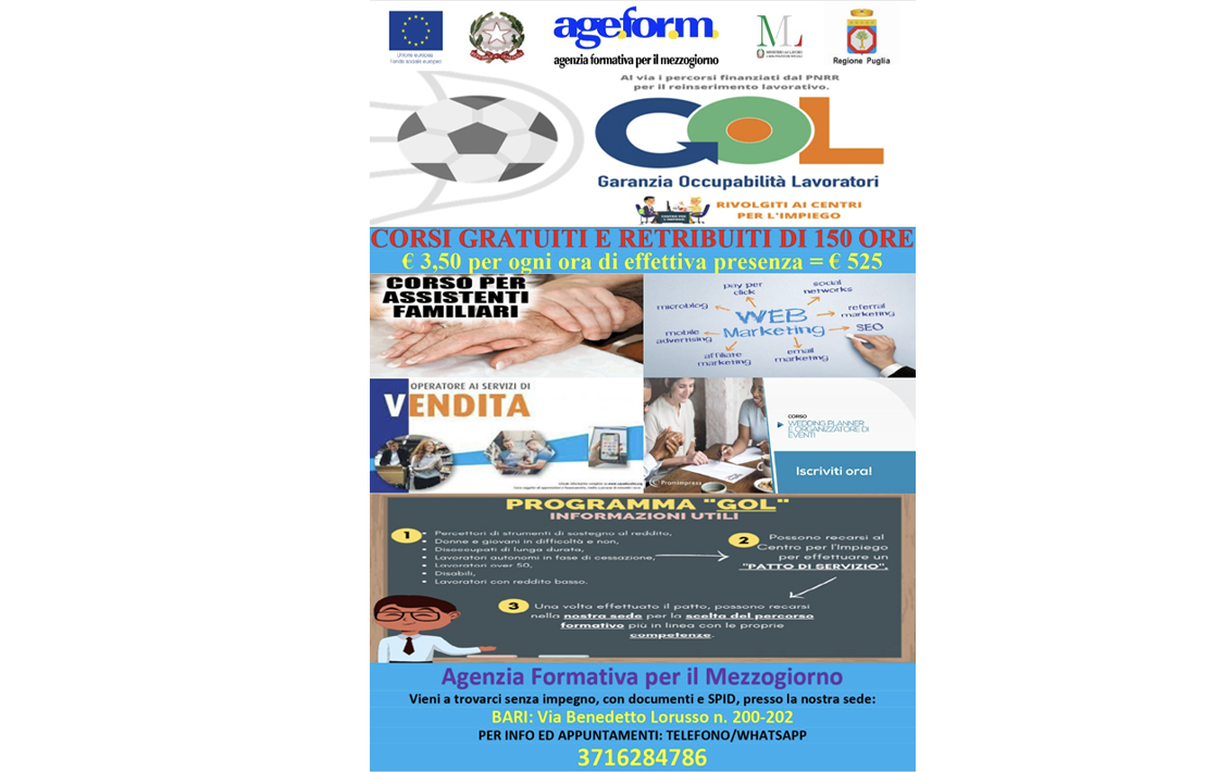 L’Agenzia Formativa per il Mezzogiorno (Age.For.M.) è una struttura che si pone sul territorio per rilevare i fabbisogni formativi e proporre azioni tese a soddisfare tali esigenze.